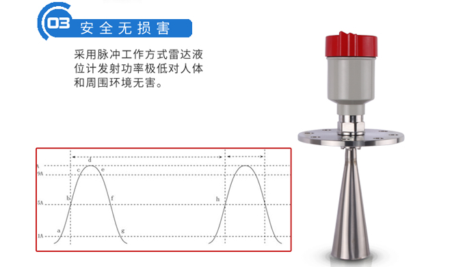 雷達液位計天線發射及窄的微波脈沖,這個脈沖以光速在空間傳播,遇到被測介質表面,其部分能量被反射回來,被同一天線接收。發射脈沖與接收脈沖的時間間隔與天線到被測介質表面的距離成正比,多用于水位、料位與化工場合。